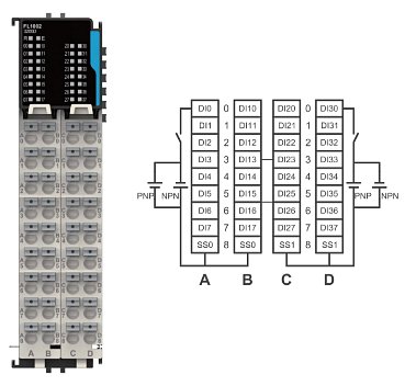 digitální vstupy 32x, PNP/NPN
